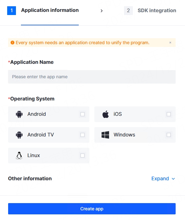 Вам необходимо заполнить основную информацию о вашем приложении, такую как имя приложения, платформа приложения и т. д.